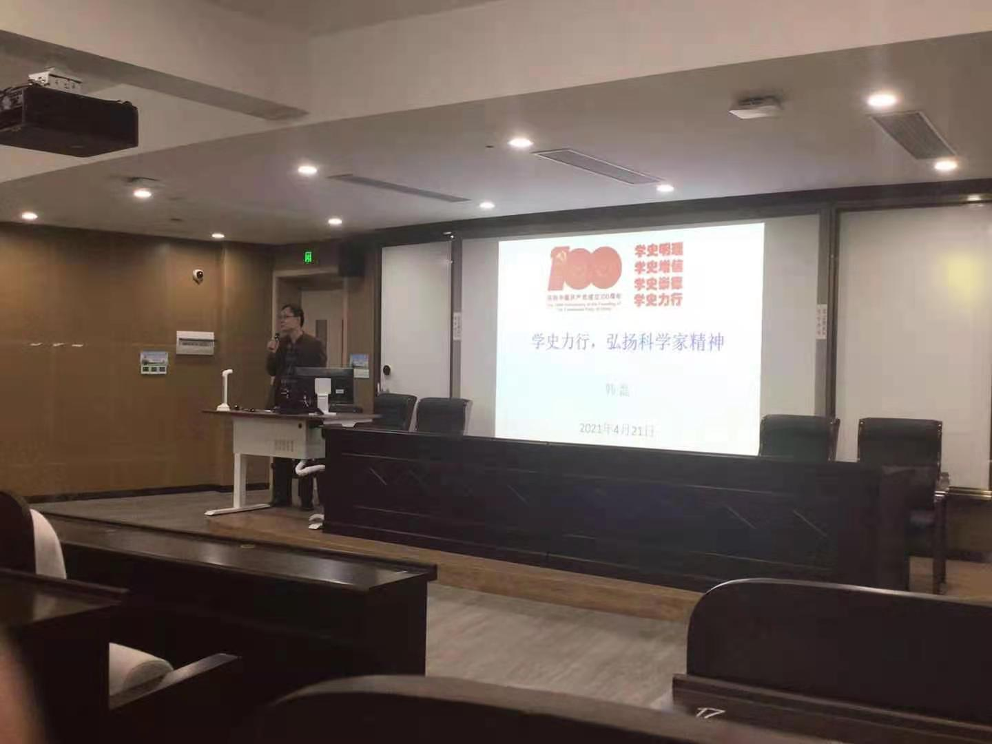 韩磊副院长给我们带来了《学史力行,弘扬科学家精神》的讲座,随后院党委委员张利老师讲述了目前我们国家半导体领域的现状。新时期新任务下的今天,广大青年特别需要弘扬科学家精神,向科技工作者学习,学习他们的家国情怀与爱国热忱,学习他们不慕名利、潜心研究的奉献精神,胸怀祖国、服务人民,勇攀高峰、敢为人先。