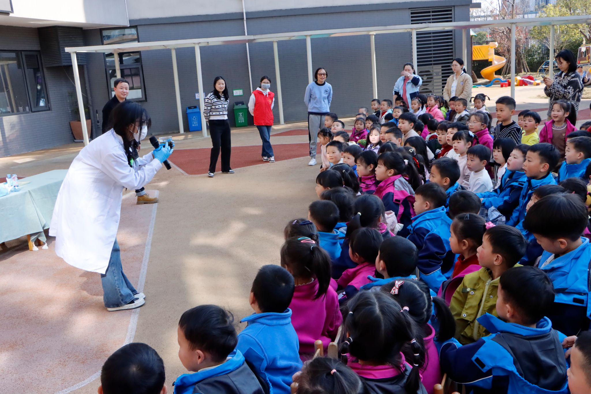 志愿者及学院质谱党支部的师生党员走进段塘街道启运社区,与宁波市第一幼儿园海潮映月校区共同组织了一场以“拾趣自然,探秘春分”为主题的“绿野实验坊”春分日植物趣味科探活动。孩子们在师生志愿者的带领下,走进科学世界,走进校园绿地,开启了一场充满趣味与知识的植物探索之旅。