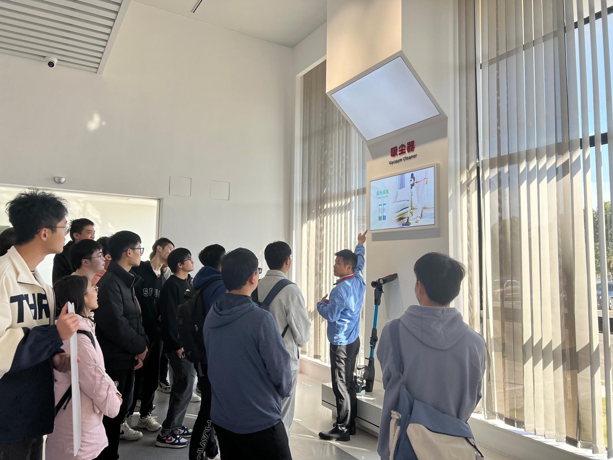 在几位经理的带领下,学院师生一行参观了整条生产流水线和产品展示中心,详细了解了公司的生产流程、运营模式、行业未来前景等情况。 随后,双方就公司校招需要进行了座谈交流。