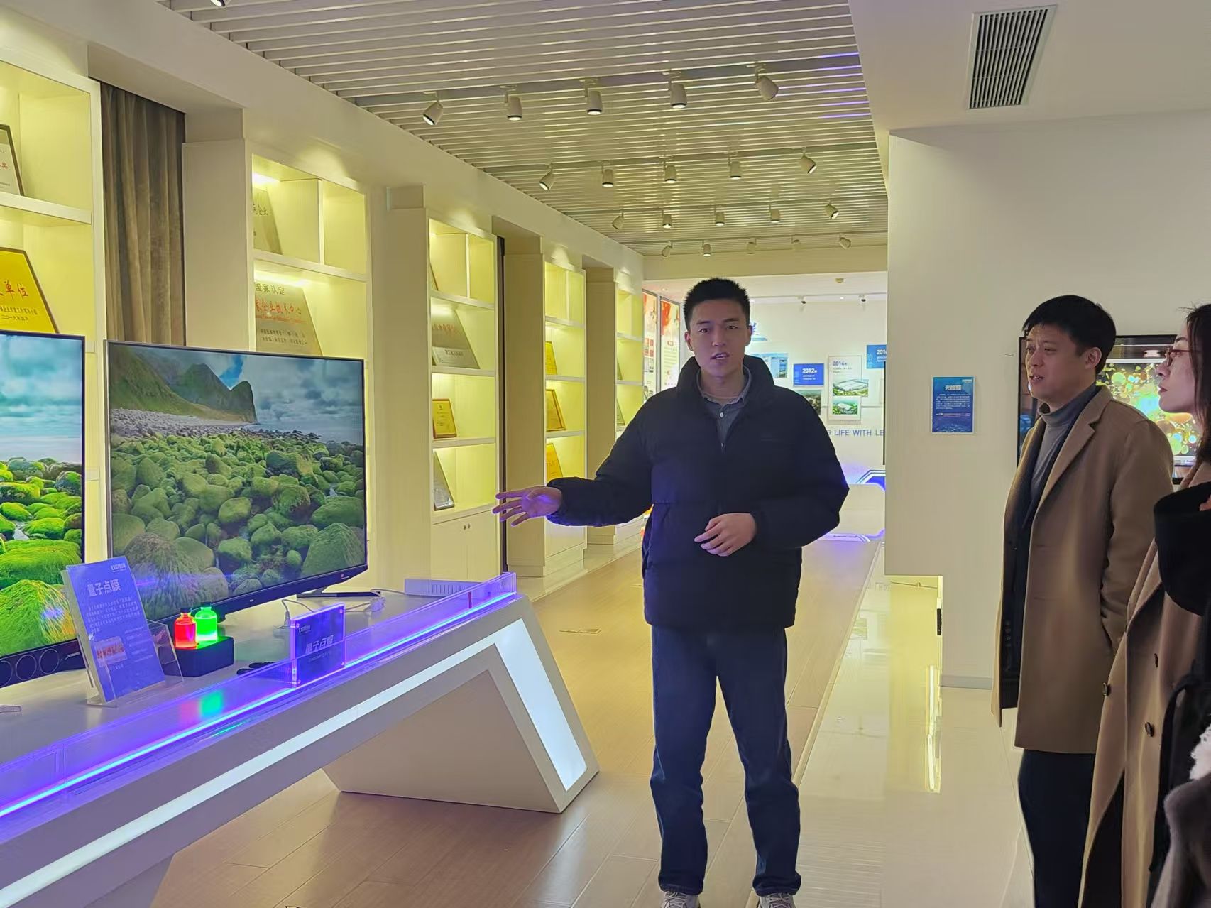 一行参观了公司展厅,叶志鹏校友详细介绍了公司的发展历程、产品种类、研发流程等情况。随后,校企双方就产学研合作、党建共建等内容和同学们关注的职业发展路径、公司人才培养体系、职业发展前景等问题进行了深入的座谈交流。