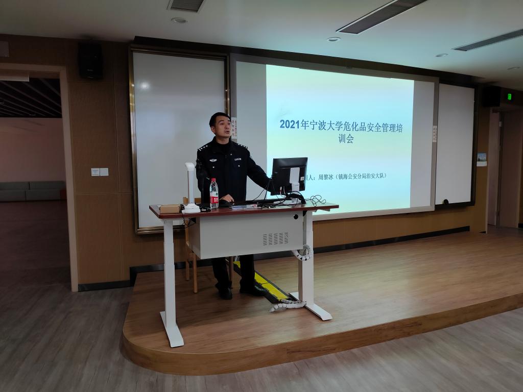 北区2号教学楼306室顺利举行。本次活动特别邀请了宁波市公安局镇海分局治安大队周黎冰警官和江北区消防救援大队刘慧明副大队长分别就危险化学品安全管理和消防安全做了精彩的讲座。本次讲座采用线下和线上直播相结合的方式,现场到会人数约150人,除了玩偶姐姐