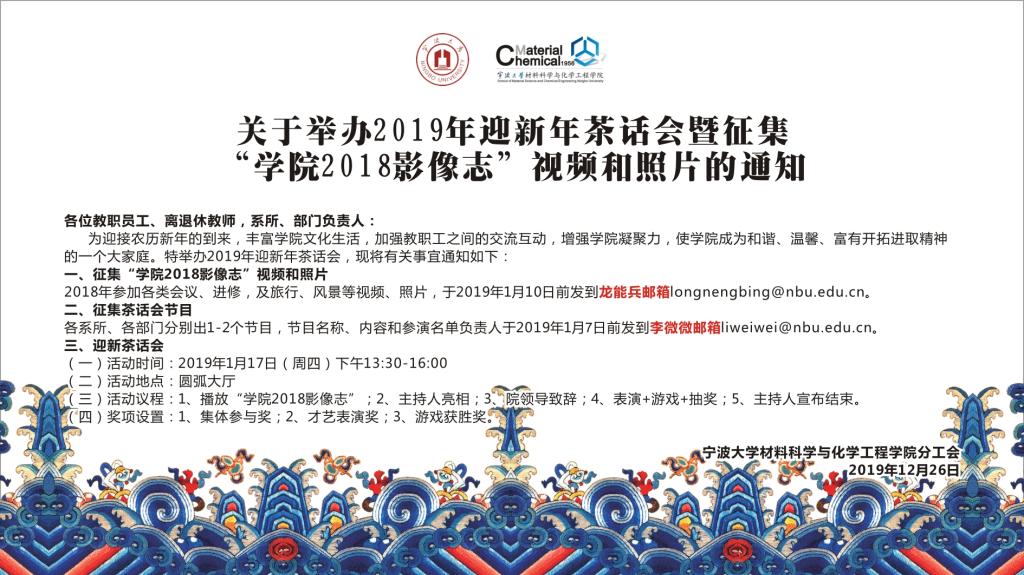 关于举办2019年迎新年茶话会暨征集“学院2018影像志”视频和照片的通知