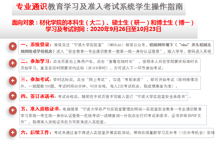 实验室管理专项目标考核的要求,每一位需要进入实验室学习和工作的师生必须进行实验室安全的在线学习、考试,成绩合格方可进入实验室工作学习(准入制),考核未合格的学生严禁进入实验室,其名单将在玩偶姐姐