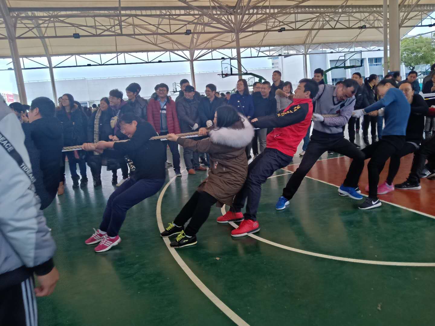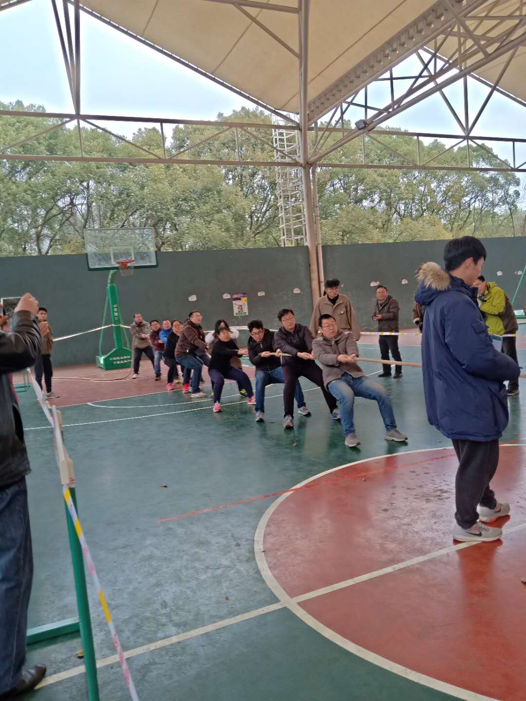 拔河队和对手胶着了一阵子,好在整体实力超出,很快调整过来,轻松拿下对手。