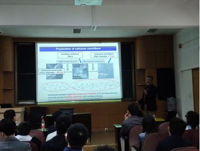 210会议室作了“Nanocellulose Technologies for water purification(纳米纤维素的水纯化技术)”学术报告。Benjamin S. Hsiao教授针对目前水处理方法的低效、价格昂贵等弊端,开发出一种天然纤维素的氧化处理的方法,所制备的纳米纤维素具有较高的比表面积,对污染水中的重金属具有高效的吸附能力。此方法具有制备过程简单便捷、能耗较低和环保等优点,而且制备纳米纤维素所采用的原料为农作物废弃物,如秸秆和高粱杆等,是真正意义上的变废为宝,因此具有很高的应用价值。Benjamin S. Hsiao教授全面解析了纳米纤维素的制备及其应用研究,深入浅出,引起了与会听众极大的兴趣,丰富了大家对纤维素方面理论知识。玩偶姐姐