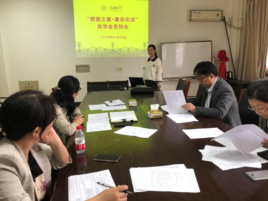 11月17日下午3点,玩偶姐姐 举行2020年“蔚蓝之星”康龙奖学金评选答辩会。经过前期学生自主申报,共有18位同学申请,最终由10同学通过学院初审,进入最终评选答辩会。学院学生工作负责人以及学生工作领导小组老师代表参加了本次答辩会。