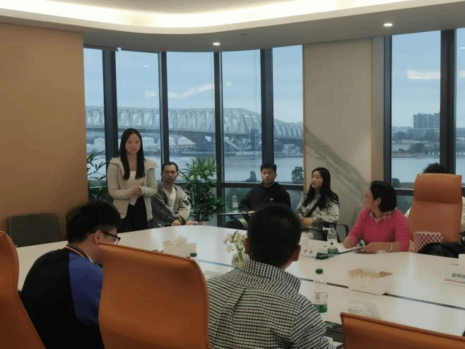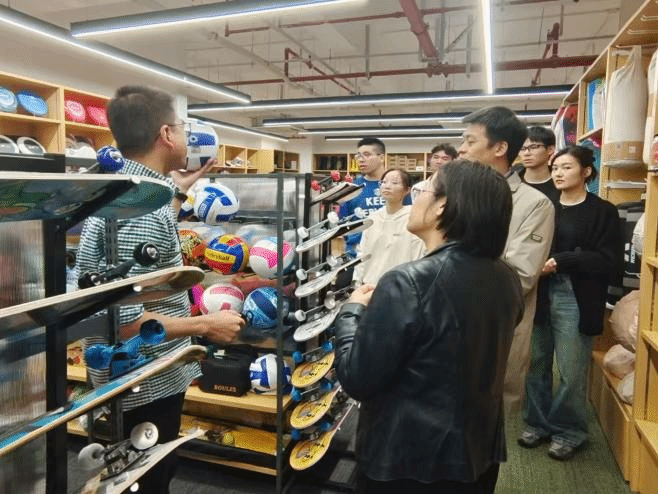 师生一行参观了公司成品展厅、质检中心、直播运营区及销售办公区,实地了解公司的主营业务和方向、近距离接触公司产品,感受公司工作氛围。公司人力资源经理陈钱讲述了公司发展历程、企业文化、主营业务和商业模式;庄惠强校友分享了公司的发展理念和未来规划,并对公司的经营模式进行了详细说明,他表示十分欢迎玩偶姐姐