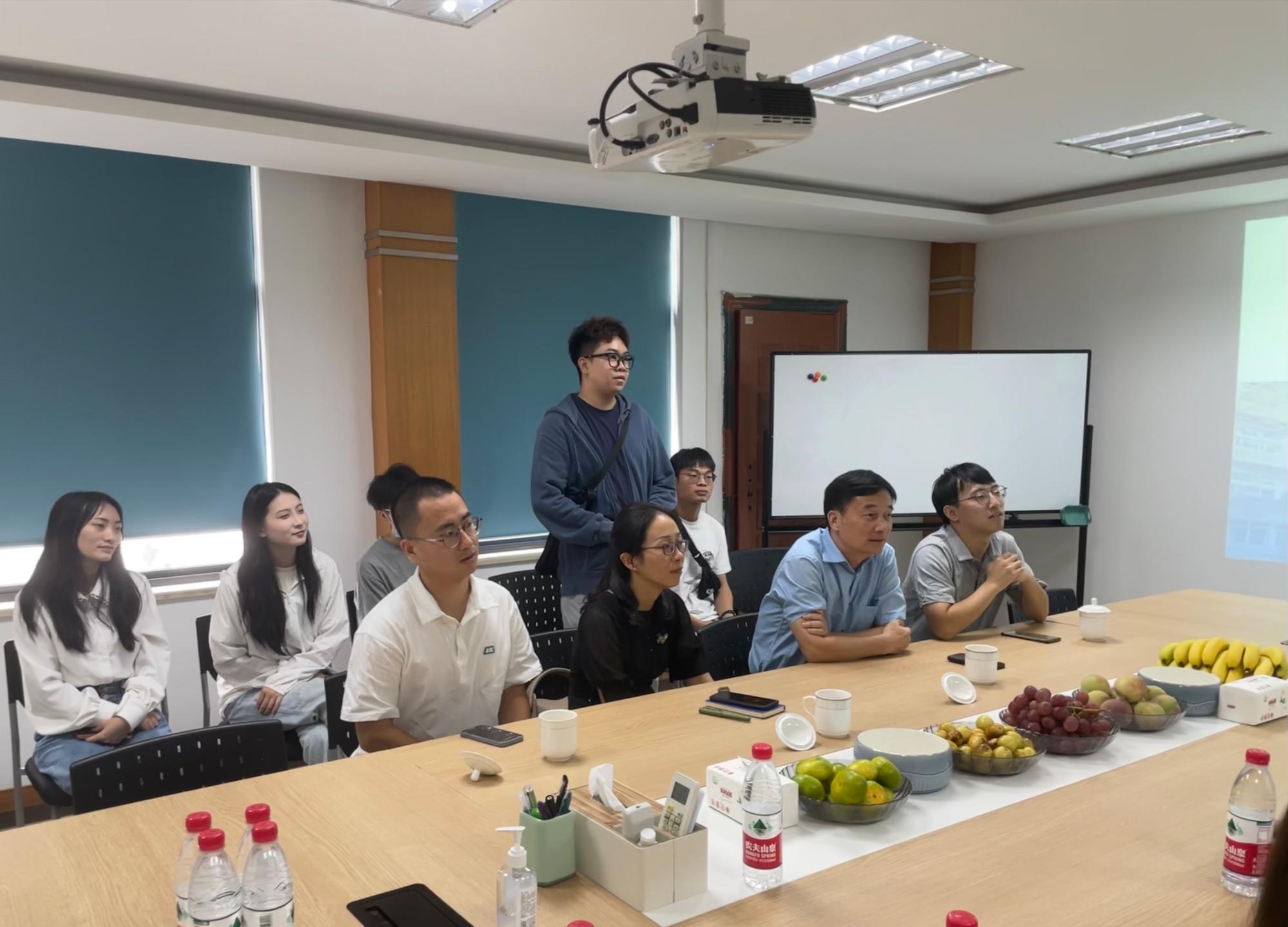 在公司会议室,陈鹏程、陈迪分别向大家介绍公司基本情况、研发重点和未来规划,并与学生代表热烈交流,解答同学们求职过程中的困惑。丁院长也向公司领导介绍了玩偶姐姐
