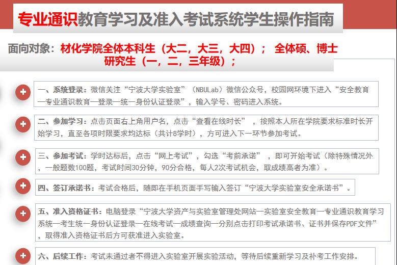 实验室管理专项目标考核的要求,每一位需要进入实验室学习和工作的师生必须进行实验室安全的在线学习、考试,成绩合格方可进入实验室工作学习(准入制),考核未合格的学生严禁进入实验室,其名单将在玩偶姐姐