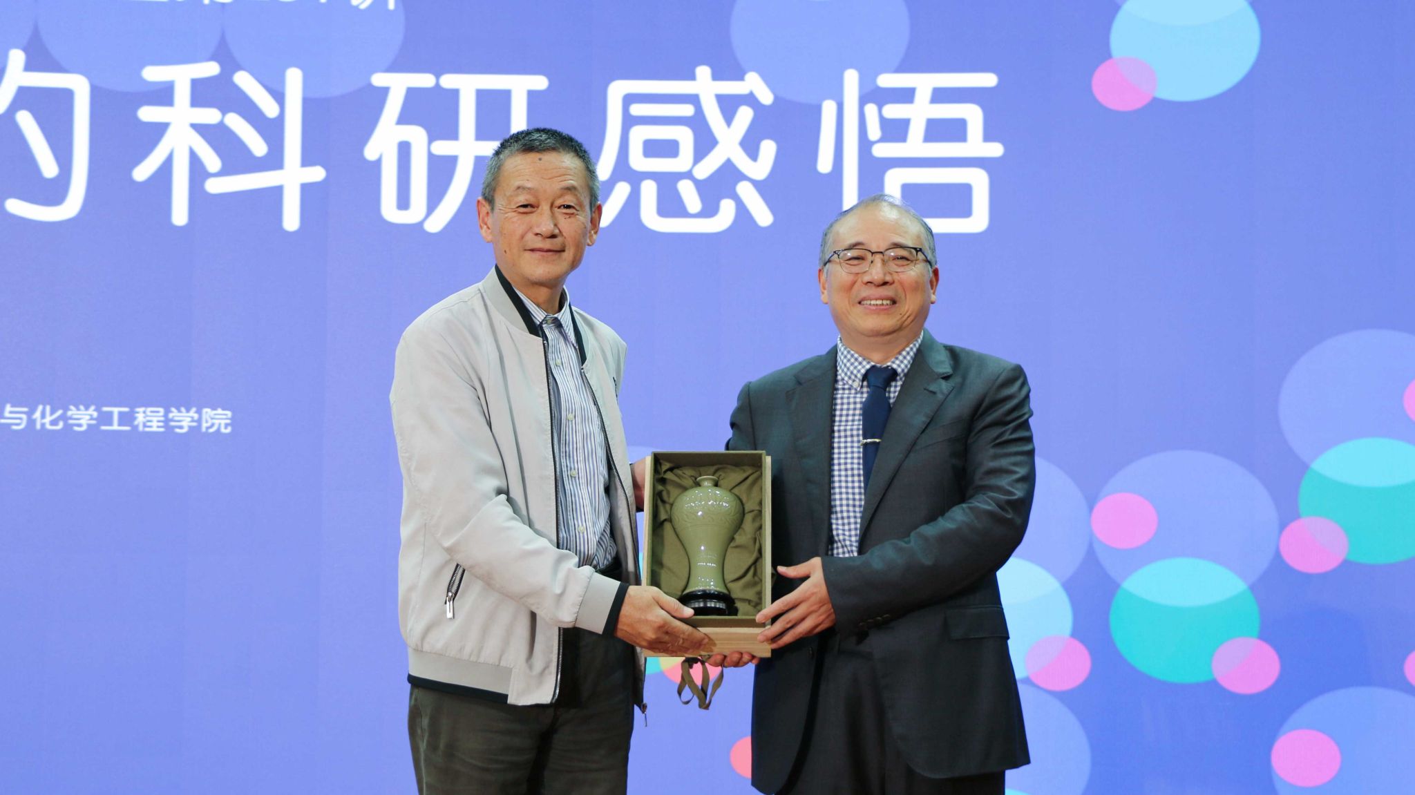 “九秋风露越窑开,夺得千峰翠色来”,这是唐朝诗人陆龟蒙称赞古越青瓷的诗句。讲座结束后,冯杰代表学校将代表浙东文化积淀的讲座纪念品“古越青瓷”赠与熊仁根院士。“古越青瓷”寓意演讲如同这古越青瓷,弥足珍贵,值得珍藏!