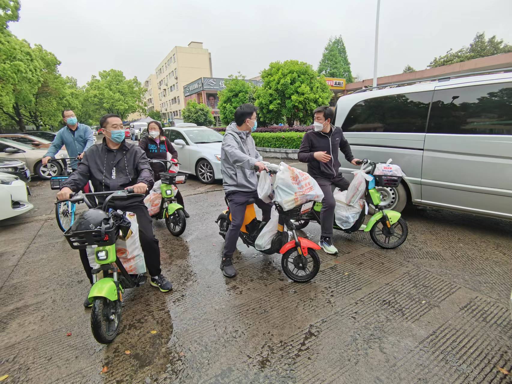 的学生大部分居住在北区学生二村内,但仍有一部分住在本部甬江宿舍区之内,跨越两个校区。当学生们反映食物及物资缺乏的情况后,孙巍副院长、李天华老师与同时驻校的朱倩倩、吕滨、李淼三位老师迅速组成一支随叫随到的物资运送小分队,他们通常群体出动,有时借用电瓶车为坐骑,有时又齐刷刷拉着小推车上阵,师生们称他们为玩偶姐姐