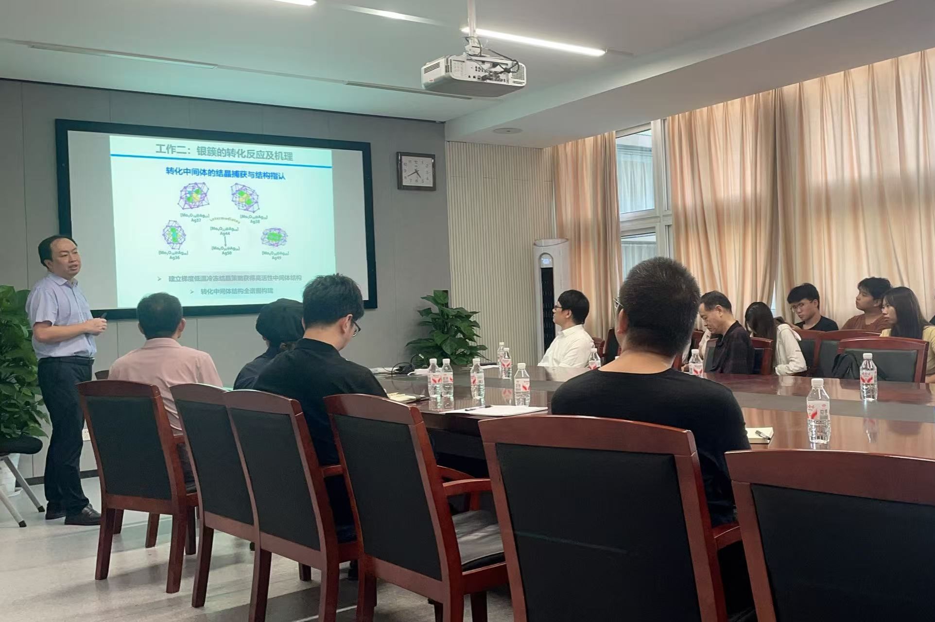 之后,山东大学孙頔教授以“分级结构银簇的构筑及转化机制”为题展开报告。孙頔教授长期从事银簇化学研究,围绕分级银簇的构筑与演变机制取得系列创新成果。相关研究获《Science》和《Nature Reviews Chemistry》亮点评述。近年来,他以通讯作者在《Science Advances》《Nature Synthesis》《PNAS》《Nature Communications》《JACS》《Angewandte Chemie》等期刊发表SCI论文100余篇,论文被引超万次,H指数达73。曾获山东省自然科学一等奖、卢嘉锡优秀导师奖,并连续多年入选爱思唯尔中国高被引学者。在报告中孙頔教授系统介绍了其团队在银簇合成化学方面的突破性工作,包括建立成核/钝化协同策略实现核/壳分级结构银簇的可控合成,揭示银簇内核的“多面体融合”与“层-层嵌套”生长机制,并开创了复杂银簇动态结构机制研究的新方法,推动了银簇化学在合成与机理层面的深入发展。