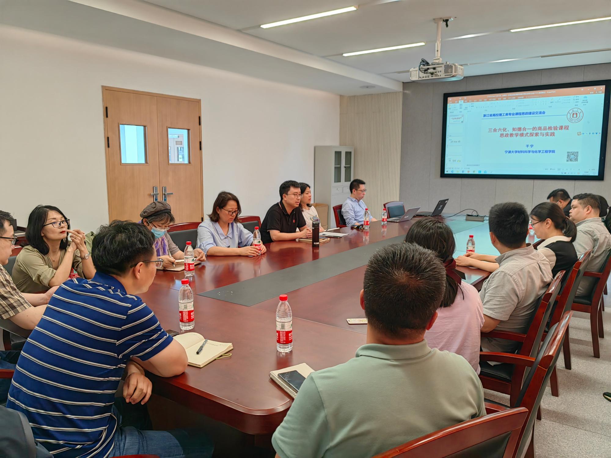 专业建设的现状,指出今年是材料和化学两大专业的一流专业建设周期的开局之年,学院将投入资源,帮助各位教师开始教学建设工作,着力培育各项各类教学成果。干宁教授结合自己的《商品检验》思政课程建设心得,详细分享了一流课程等教学成果培育的一手经验。谢洪珍副教授分享了对慕课制作、教师技能竞赛等方面的心得与技巧。与会教师也积极向两位教师提问,交流气氛融洽,分享会取得了圆满成功。