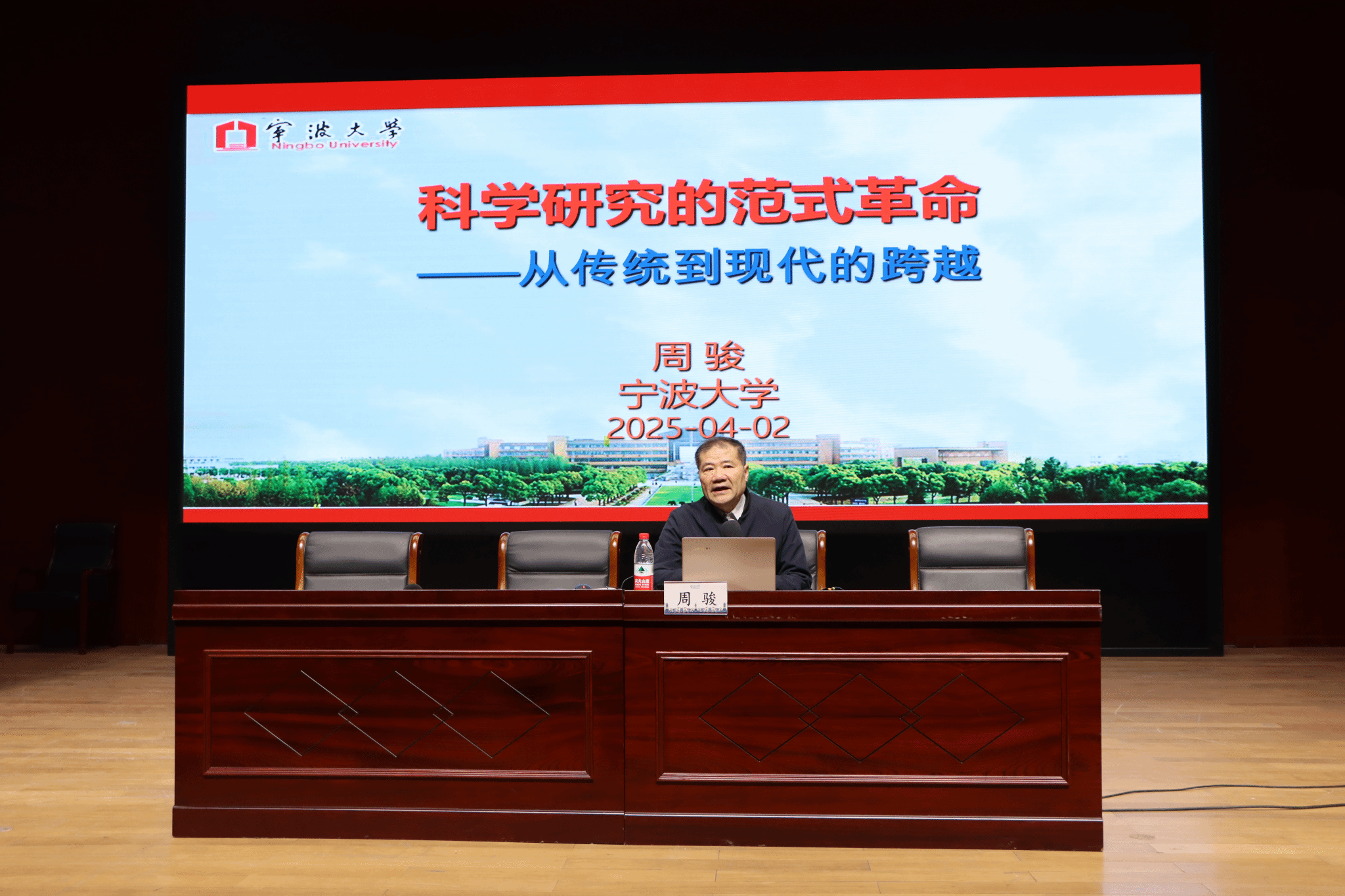 二级教授、博士生导师、包玉刚学者周骏教授应邀主讲。他从诺贝尔奖与人工智能的深度融合谈起,回顾了2024年三大科学奖项的突破性成果——从霍普菲尔德与辛顿的神经网络奠基,到AlphaFold 2破解蛋白质结构难题,揭示AI如何成为推动科学革命的“新引擎”。随后,他系统梳理了科学范式的百年变迁:从经验主义到理论推导,从计算模拟到数据驱动,直至今日的“AI for Science”第五范式。此外,他结合自身科研与学习经历,与在场同学们分享科研方向的调整与创新以及论文的撰写与发表相关经验,激发了同学们的科研热情和探索精神。在互动环节,同学们围绕AI在科学研究中的应用、科研规划等关心的问题积极提问,周骏教授结合自身经历详细解答,现场气氛热烈。