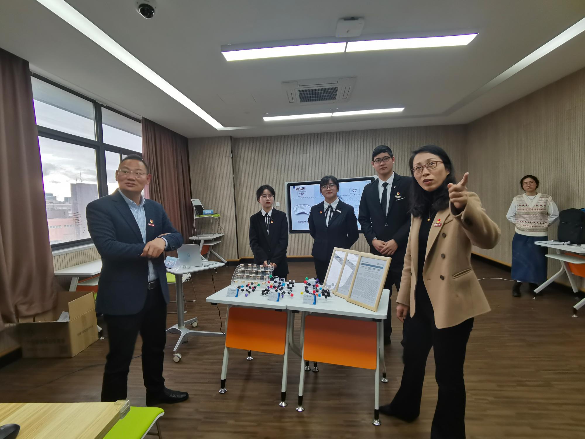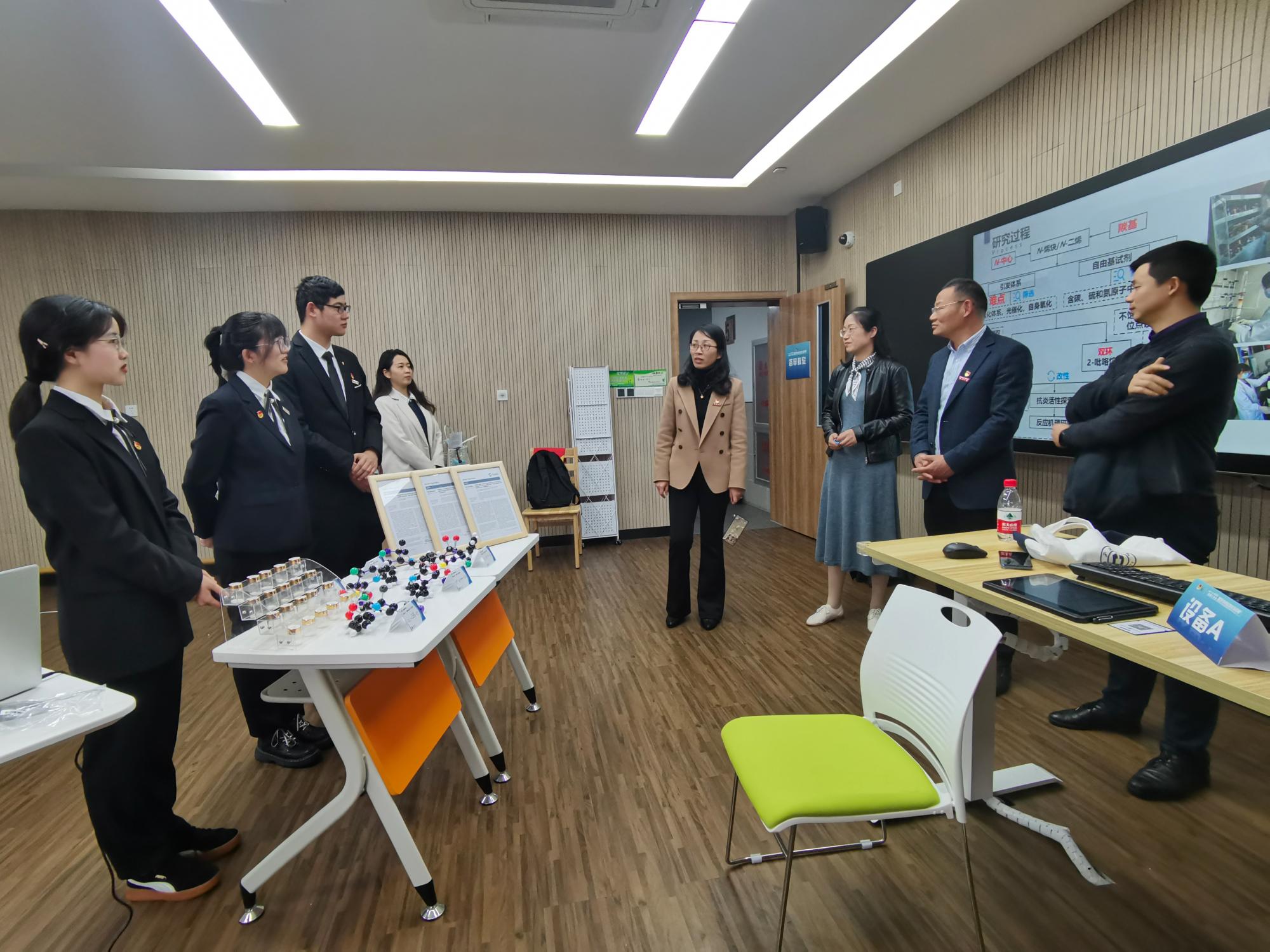 的绿色有机创制本科生团队也与在场老师介绍了答辩布置、问辩设置等内容。