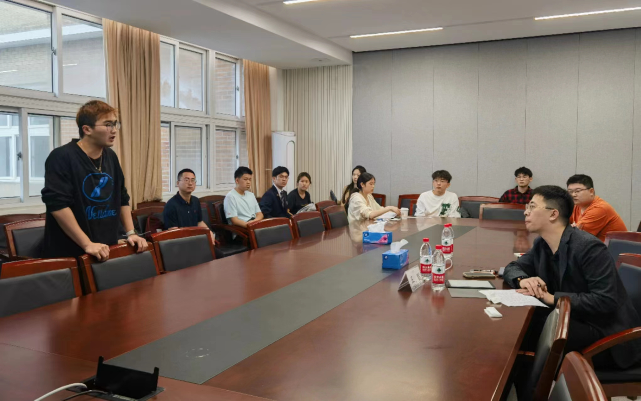 本次交流会以模拟答辩形式展开,学院2023年“互联网+”竞赛项目的9支学生团队结合项目PPT从项目背景、产品介绍、商业模式等方面依次讲述。随后企业家导师进行项目问辩训练和指导交流。长达6个小时的交流,学生团队从创业投资人角度再次深入认识创新创业的意义的价值,为项目进一步打磨提升指出方向。