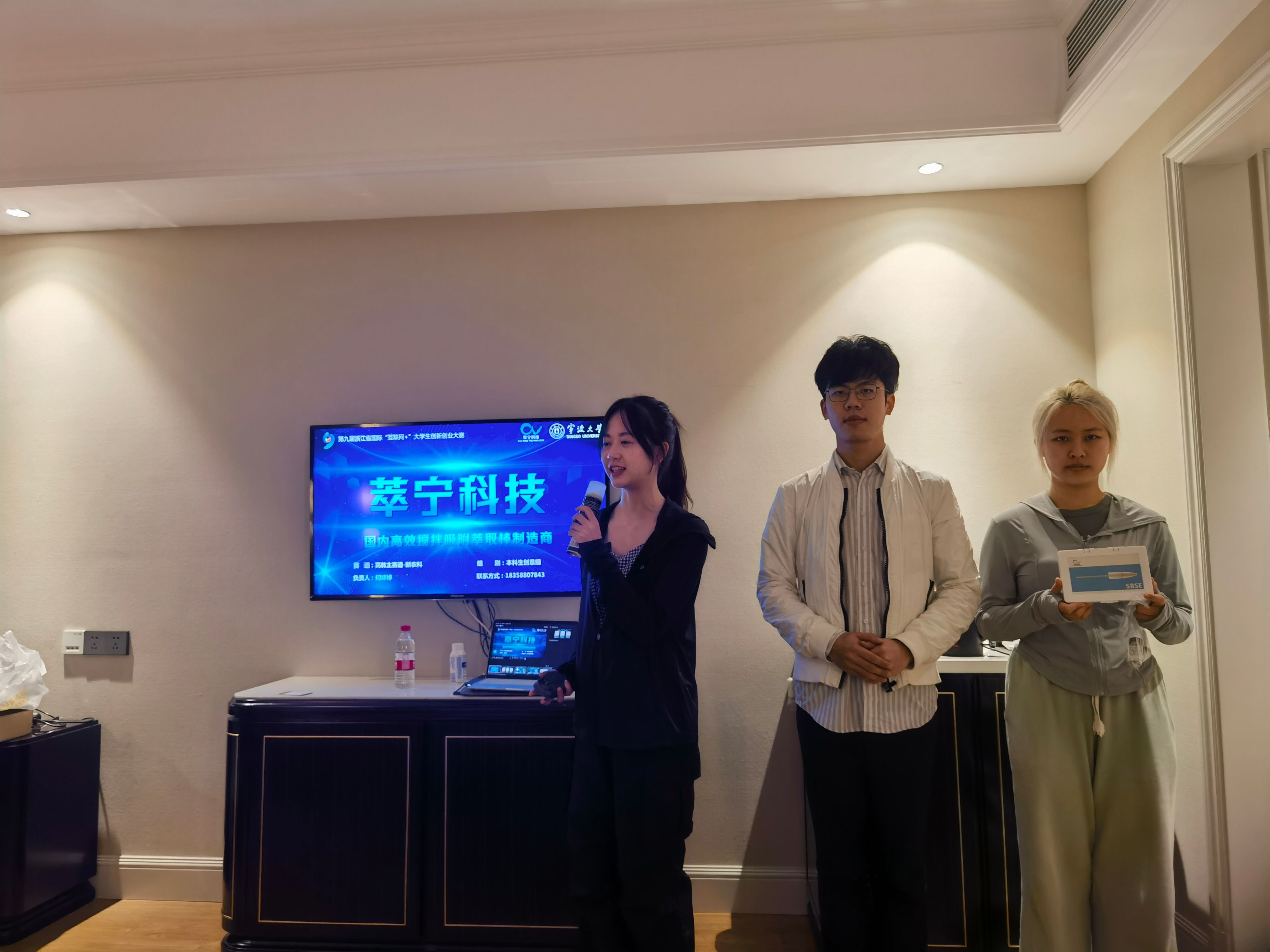 干宁、姚禹阳老师指导,何婷婷、曹婧雅,陶志豪等同学参加的“萃宁科技——国内高效搅拌吸附萃取棒制造商”项目荣获银奖,实现学院在新农科项目获奖的零突破。