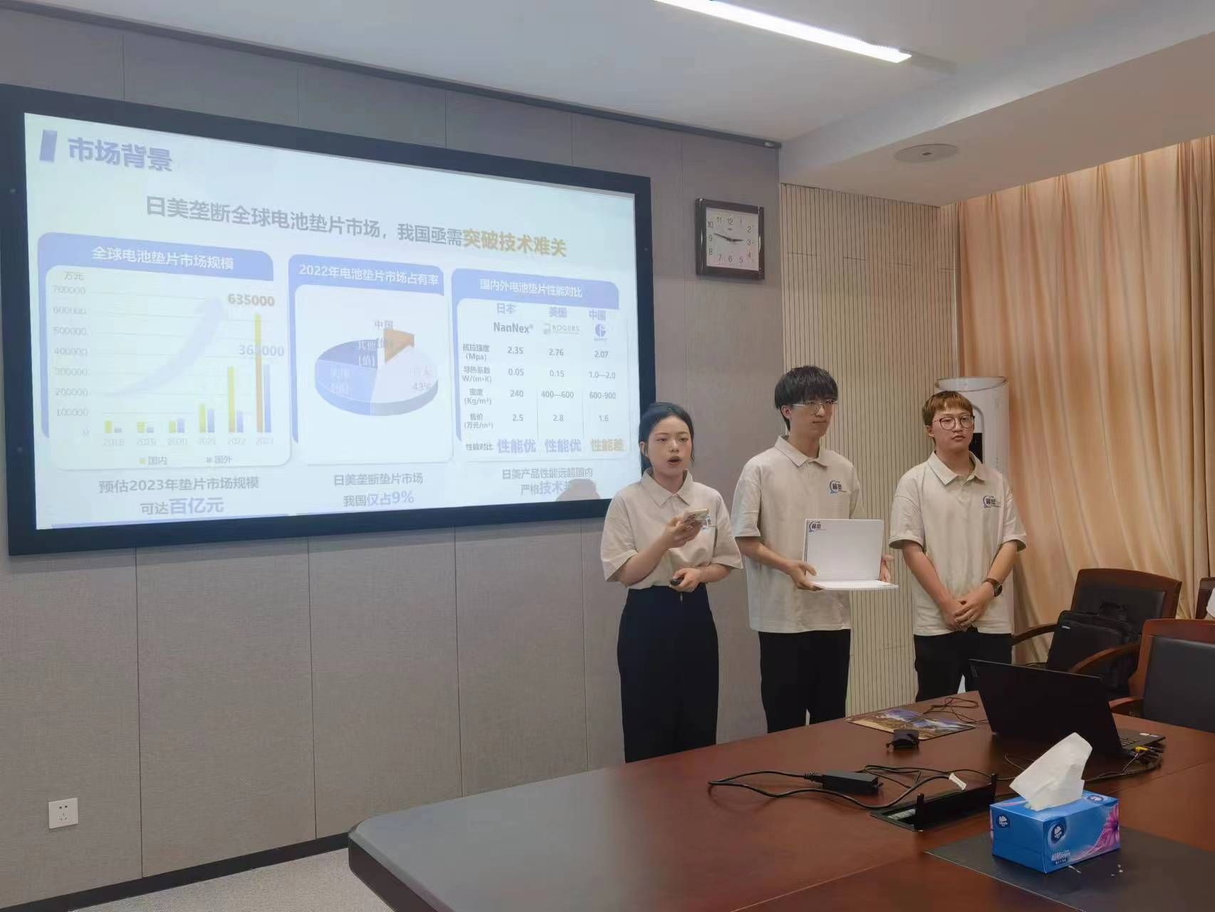 曹允业、许伟、冉繁敏老师指导,张亚、于珍雁、王一强等同学参加的“点‘废’成‘金’——多源固废协同处置资源化利用技术引领者”项目,张利、芦意老师指导,周子建、姚玉航、郑惠芝等同学参加的“超塑智造——全球微孔聚丙烯材料用于车用电池垫片开创者”项目荣获金奖(新工科)。另外由玩偶姐姐