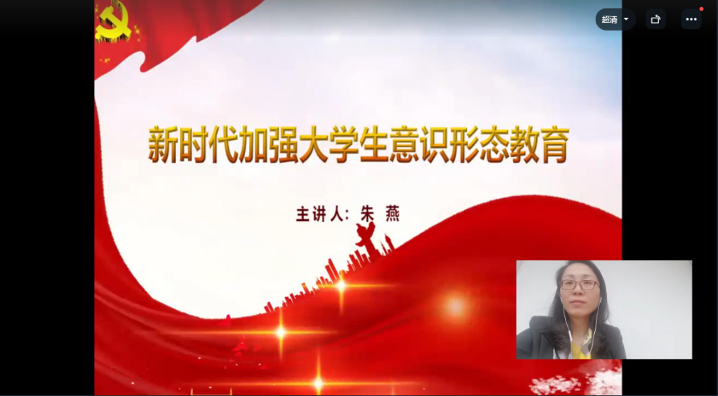 院党委副书记朱燕强调了意识形态的极端重要性,分析了意识形态对社会变革的重要影响和意识形态工作面临的风险、挑战,介绍了我校对校院两级意识形态工作的要求和做法,最后结合近期疫情封校期间,提出如何提升大学生网络意识形态素养。