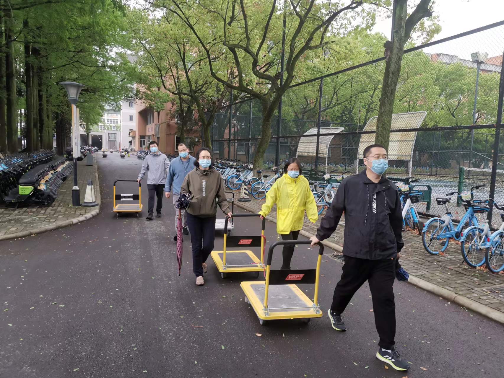以特聘院长丁传凡、党委书记罗云杰、分管实验室工作的副院长孙巍为成员,组建校内、校外志愿者队伍;以值班辅导员韩鸿儒为负责人,加上7位值班的辅导员和教师组成校内北区宿舍区、教学区和本部甬江宿舍区的校内物资运送小分队;以校外辅导员冉繁敏为负责人,加上学校附近的教师志愿者30余人组成校外物资运送小分队。