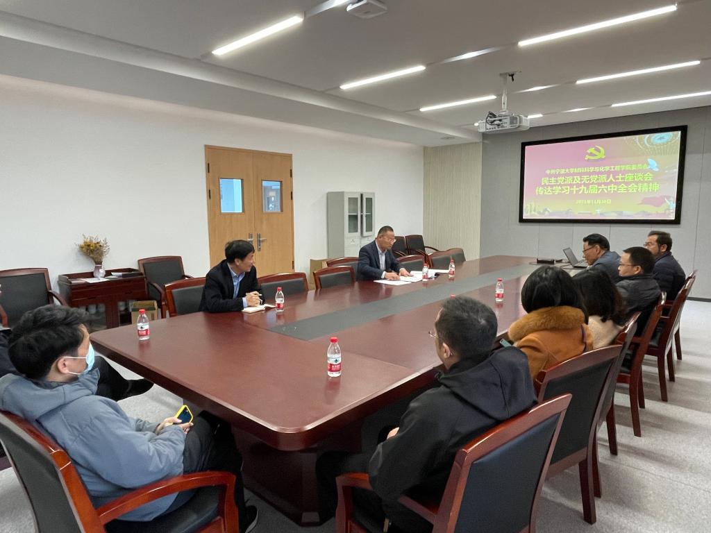 党委在北区1号实验楼1227会议室召开民主党派及无党派人士座谈会,深入传达学习中国共产党第十九届中央委员会第六次全体会议精神。学院党委书记罗云杰、特聘院长丁传凡、学院民主党派及无党派人士参加了此次会议。