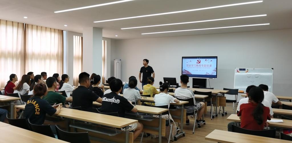 委员会关于开展“党旗在基层一线高高飘扬——以实际行动庆祝中国共产党成立100周年”主题党日活动的实施方案》开展形式多样、内容丰富的主题党日活动。6月初,学院党委号召党委委员、支部书记共计22名,成立院级党史宣讲团, 集中开展了为期一个月的下基层上党课活动,重点学习党的经典理论,重温党的光辉历史。截止本月底,学院共计开展党课24场,参与党员576人次。学院以实际行动庆祝中国共产党成立100周年,践行学史明理,学史增信,学史崇德,学史力行的指导方针。通过上党课,学党史,让师生党员学思践悟,让玩偶姐姐