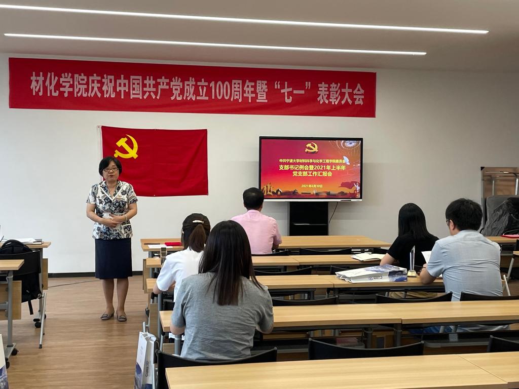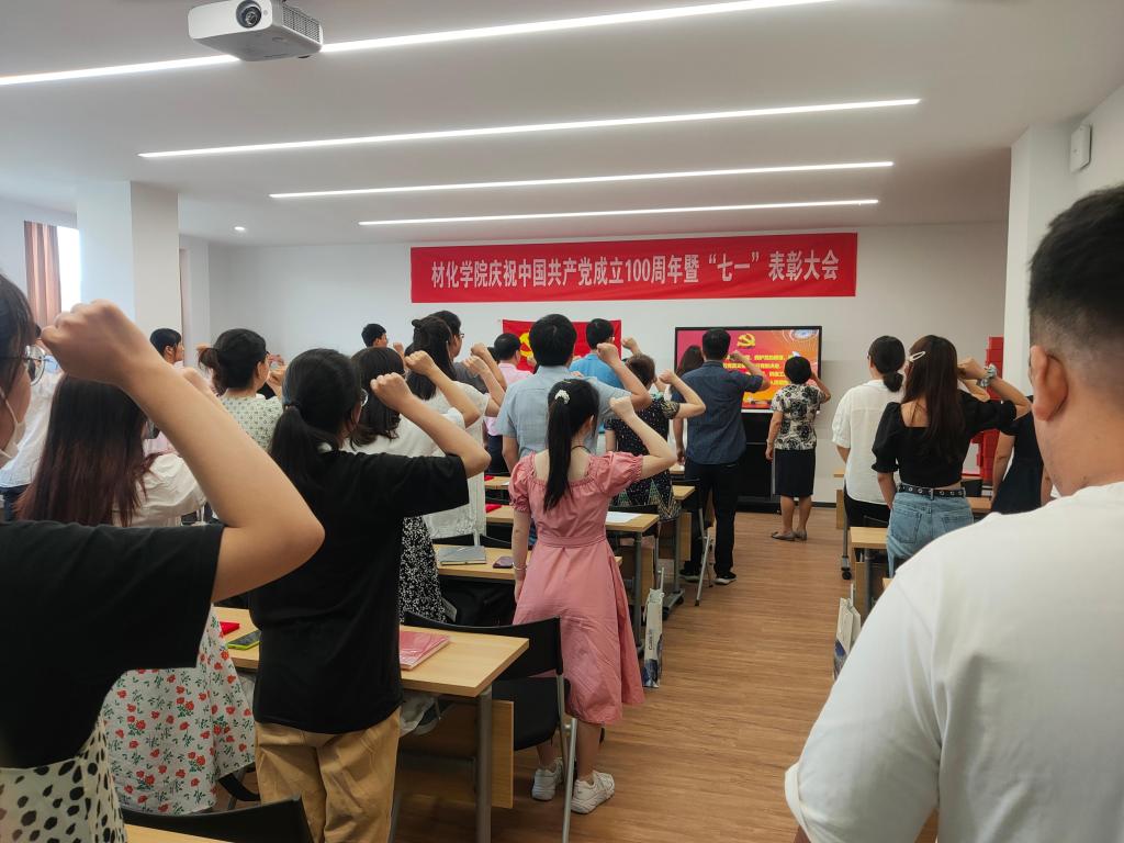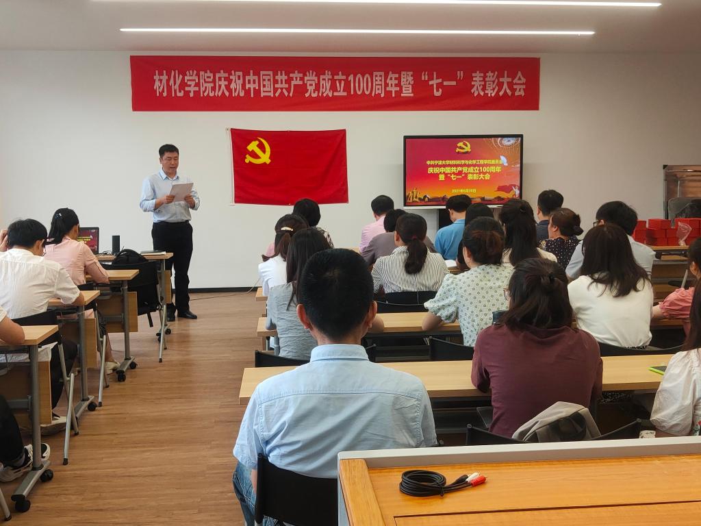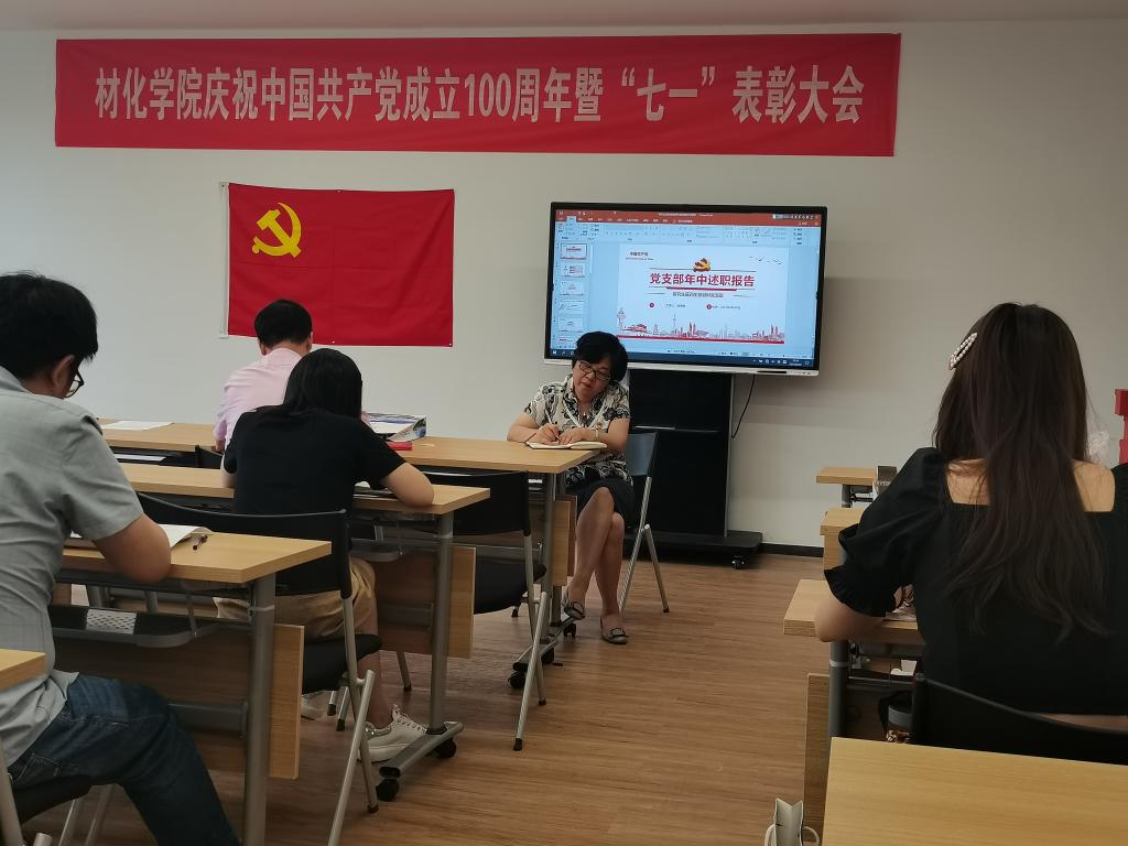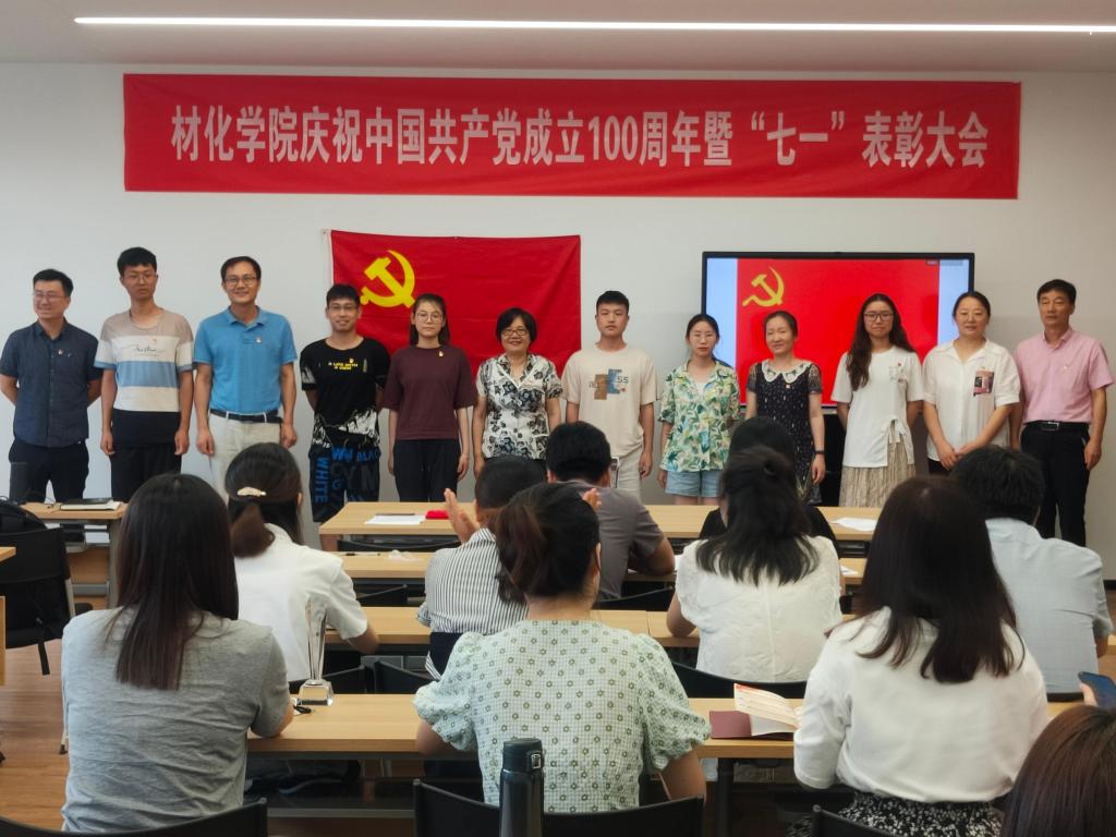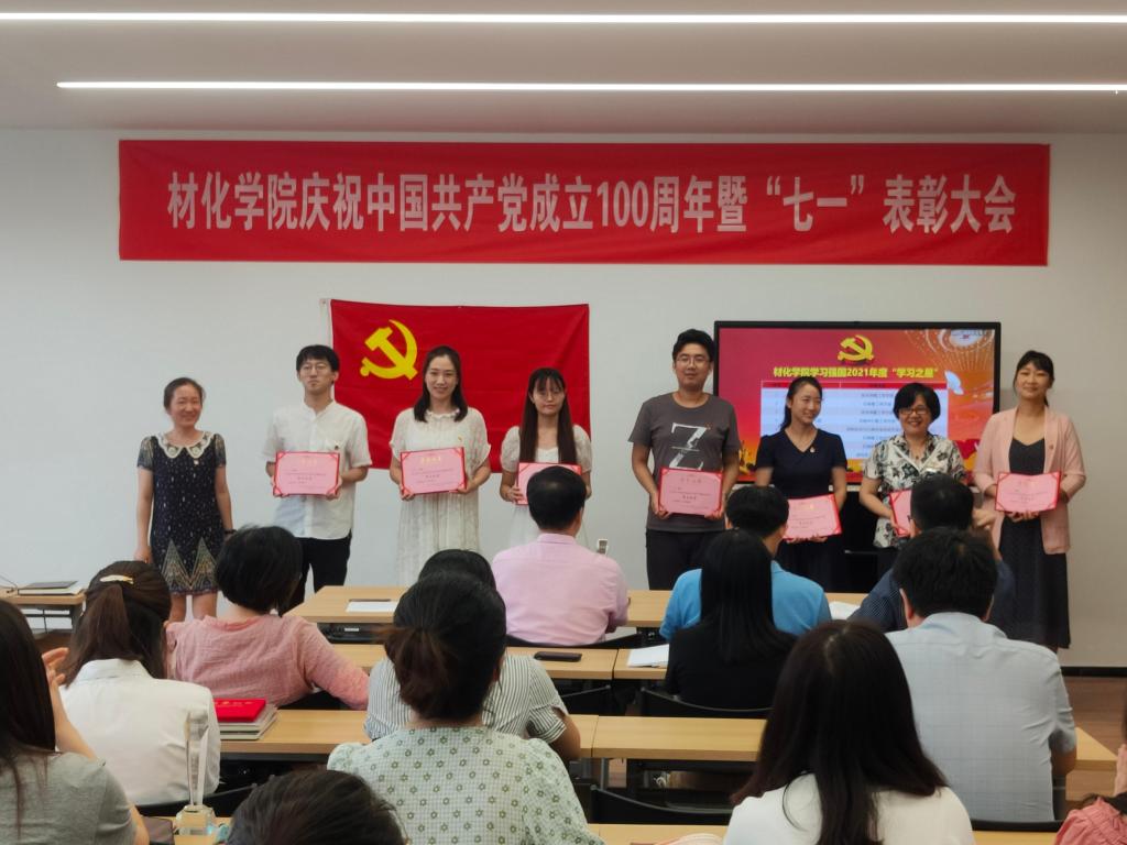在北区1号实验楼1225教室召开庆祝中国共产党成立100周年暨“七一”表彰大会。学院党员领导干部、全体党委委员、党支部书记及新发展党员等参会。大会由院党委委员韩鸿儒主持。