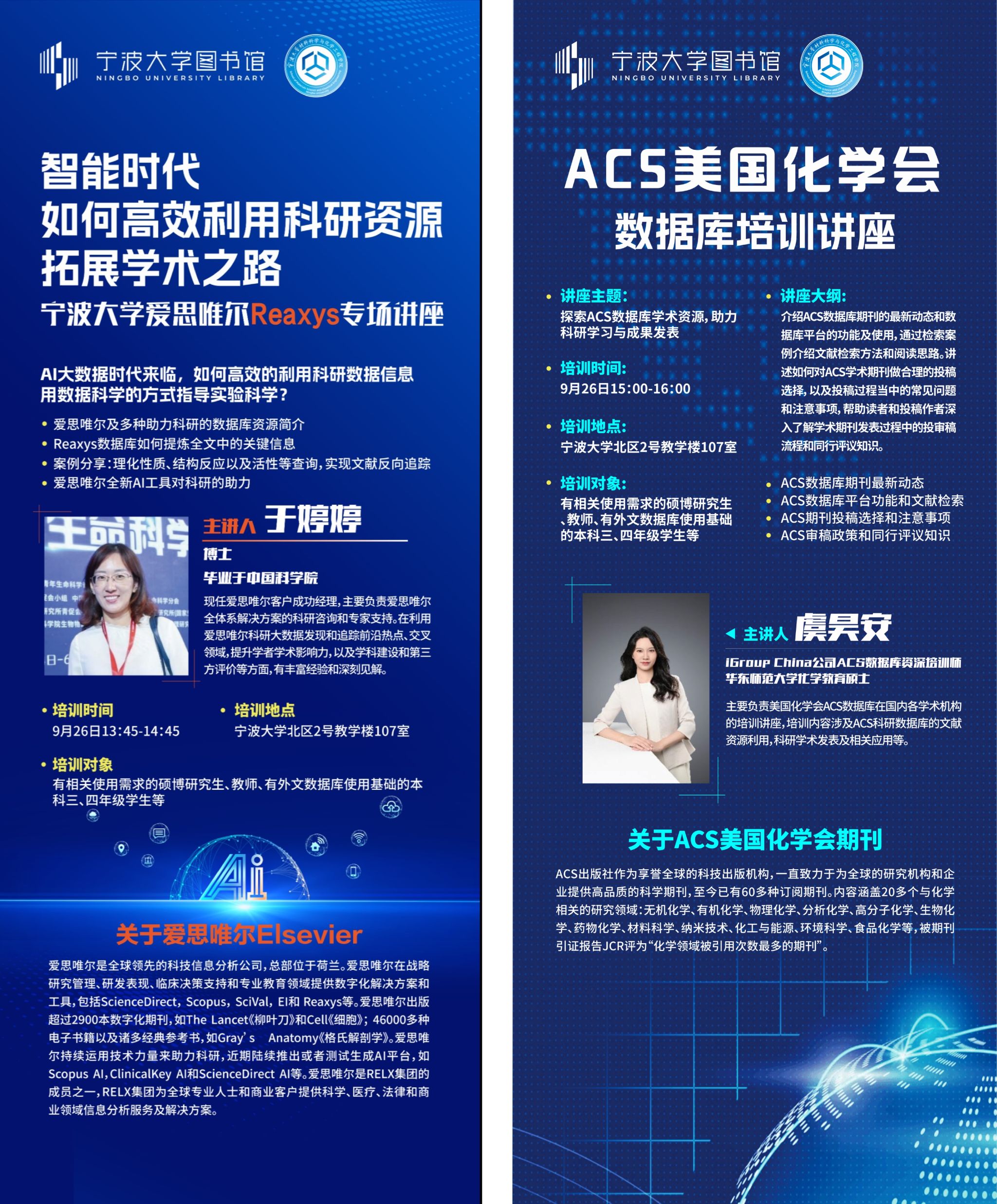 为了提升科研效率,增强文献检索与数据分析能力,学校图书馆特邀请两位领域内的专家为大家进行爱思唯尔Reaxys和美国化学学会(ACS)数据库的使用技巧培训,请玩偶姐姐