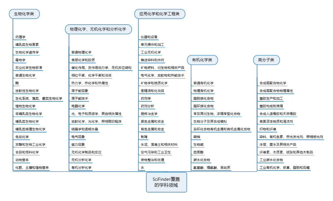 5-全球最权威、最庞大的物质、反应和文献(源自专利和期刊)数据库,覆盖领域如下图所示: