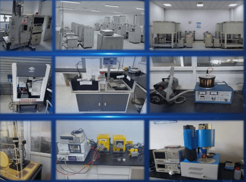 现有晶体生长、加工和测试平台的条件包括:(1)生长设备:自动提拉炉2台;四工位下降炉 6台;单工位下降炉:20台;真空高温下降炉:1台;高温马弗炉7台;(2)加工设备:晶体定向仪2台;金刚石线切割机1台;等离子溅射仪1台;内圆切割4台;(3)测试设备:阻抗分析仪;原子力显微镜;高低温电阻;介电测试;红外光谱等